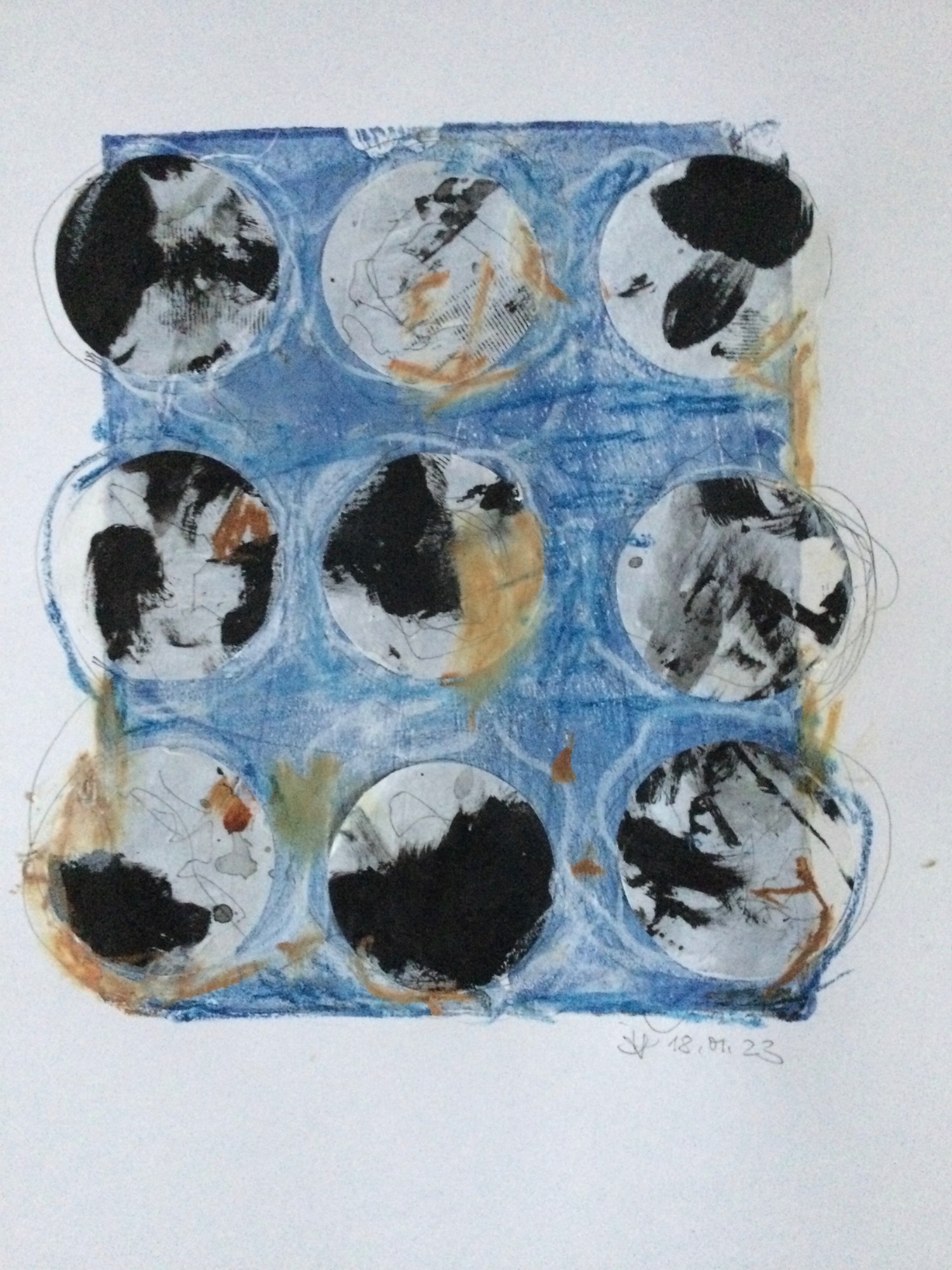 Die kleinen Formen, Farbflächen und Linien stehen für Emotionen, Impulse und Reaktionen - für das was sich in uns bewegt, oft bevor wir es benennen können.