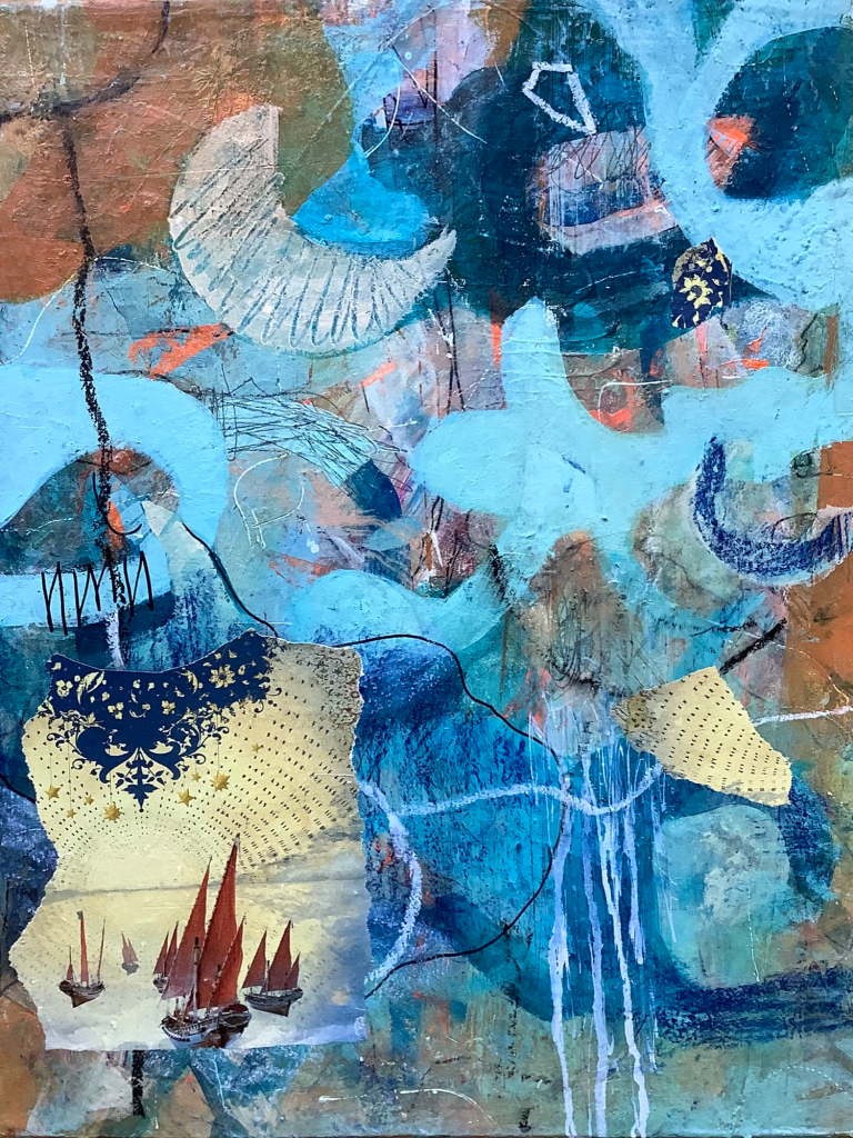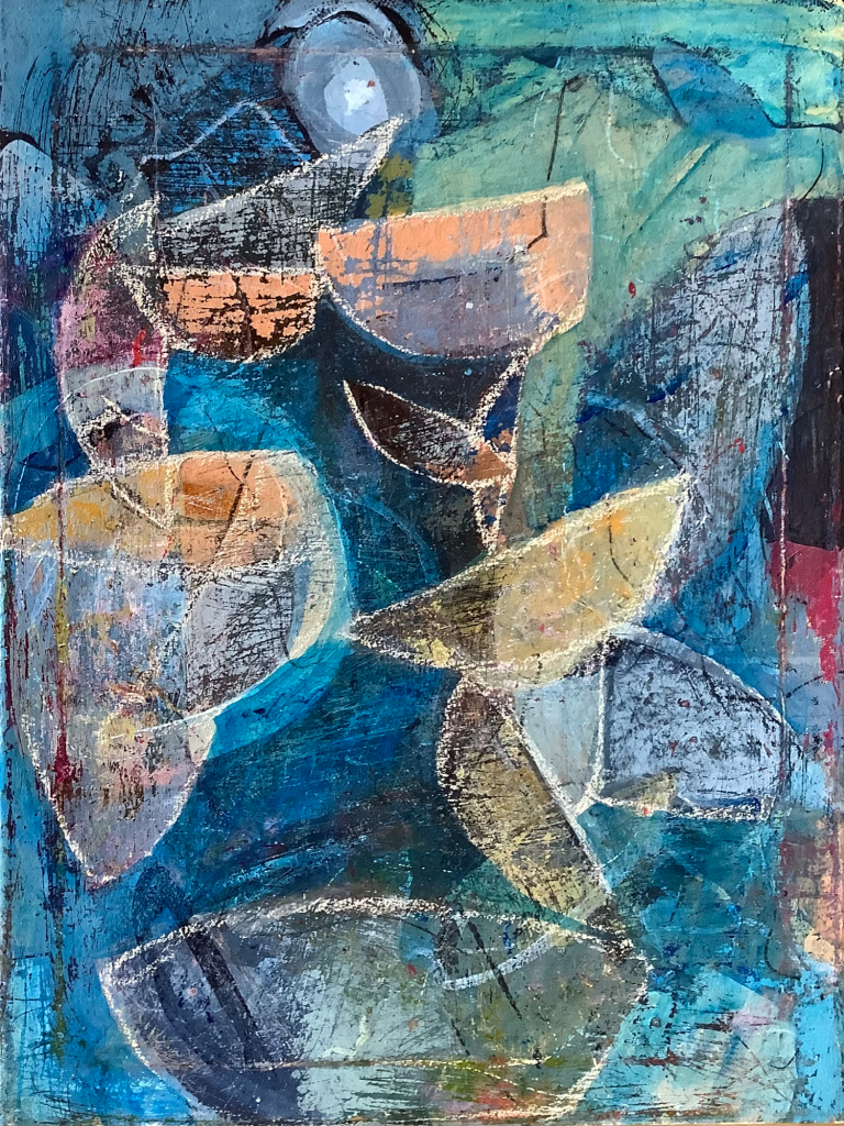 Schichten und Farben treffen aufeinander und öffnen einen Raum im Wandel.